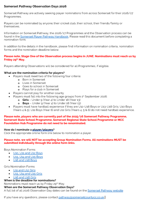 Players can be nominated by anyone; their cricket coach, school, friend, family or themselves